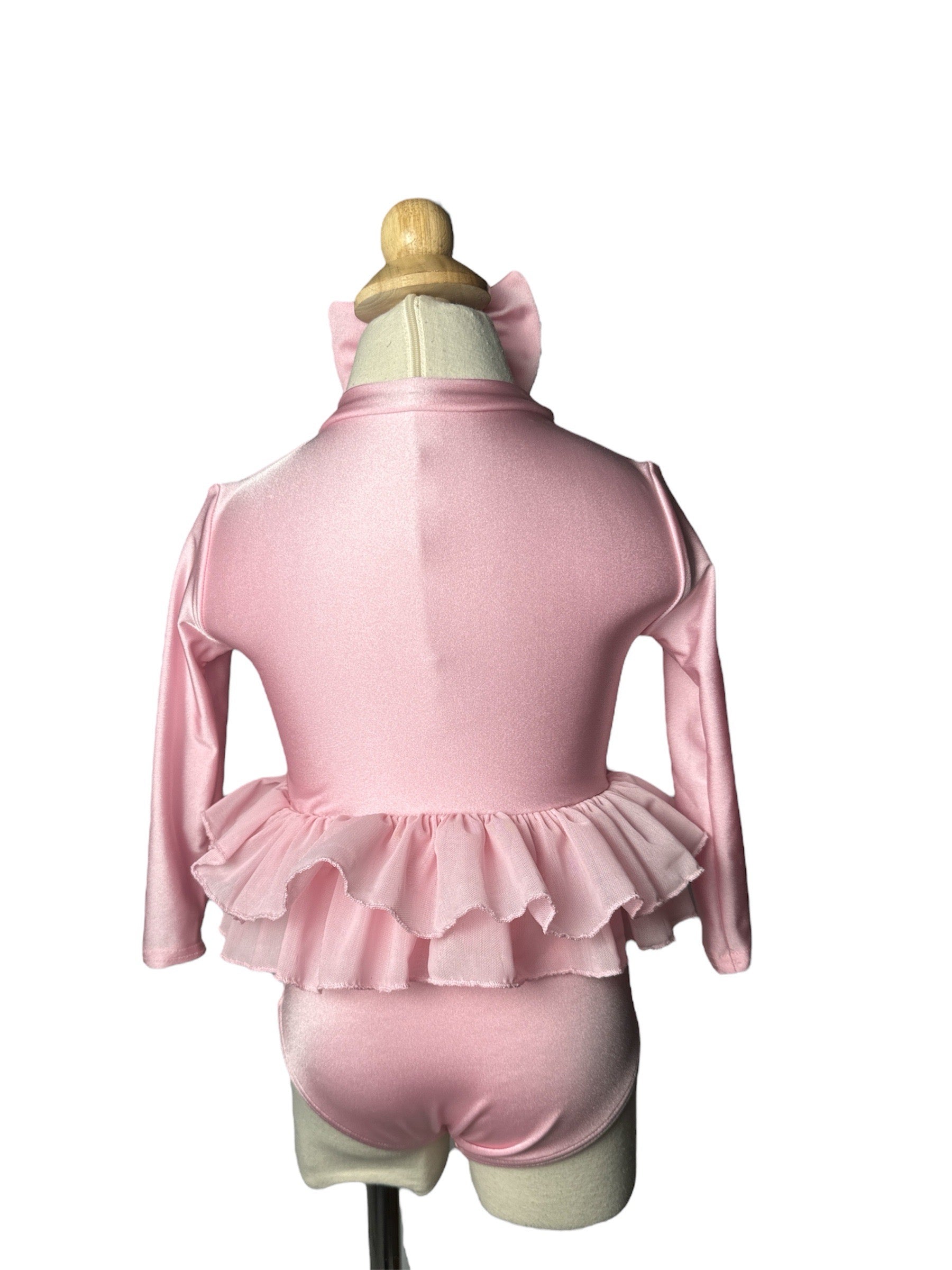 Cotton Candy Pink Two Piece Long Sleeve Ruffle High Waist Swimwear