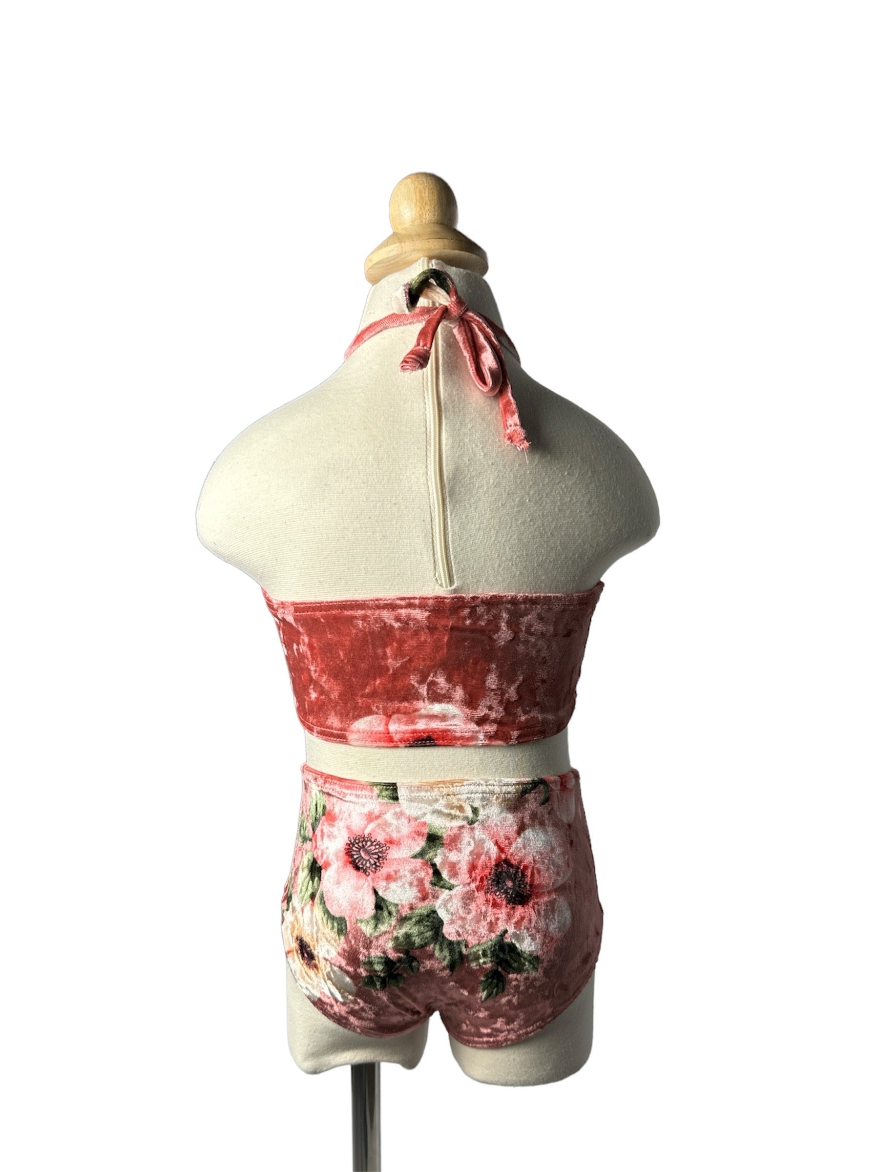 Velvet Rosette Two Piece Bandeau High Waist Swimwear